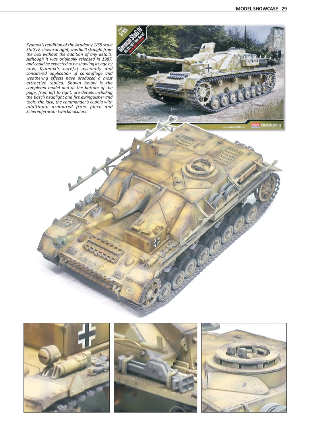 My work, German Stug IV was prominently featured in Tank Craft 47, including a four-page spread and a cover photograph. Being published in this internationally recognized modeling series is a significant professional milestone and reflects the quality, accuracy, and craftsmanship that define my builds.